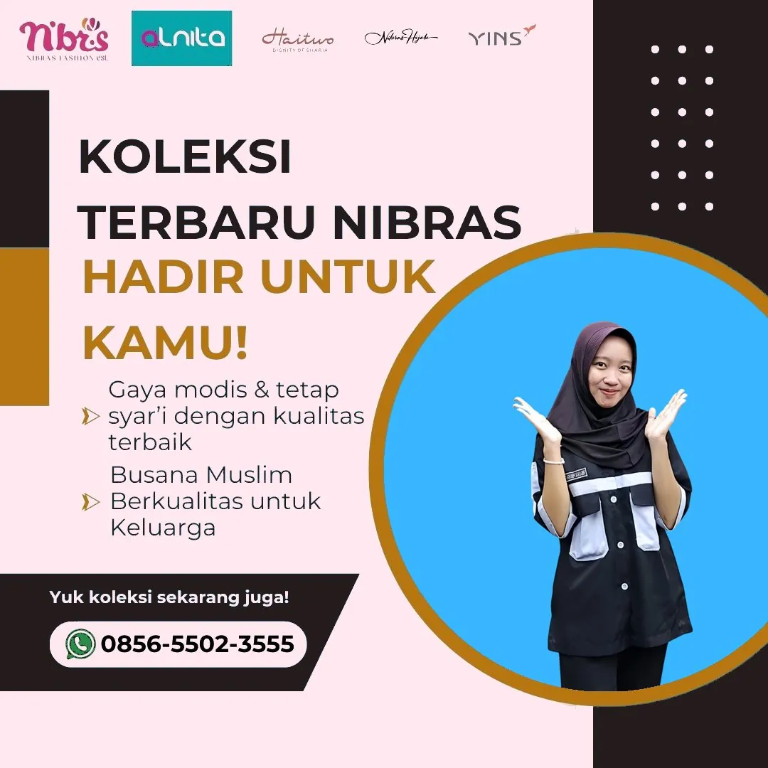 Hubungi WA 0856-5502-3555 — Outlet Nibras House Bekasi: Nibras Terbaru 2026 Bekasi — koleksi busana muslim dari daily-wear sampai outfit formal, plus hijab & aksesoris; banyak lini brand terkenal dan jaringan Nibras House tersebar di Indonesia.